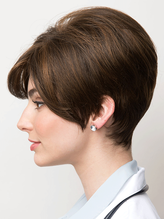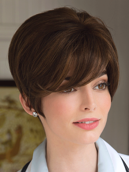 Flattering tapered style with a long asymmetric fringe.