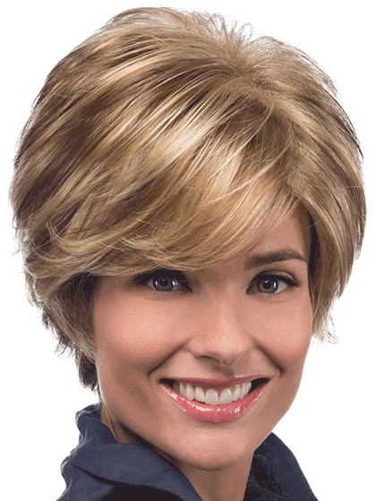 Avery radiates charisma with her beautiful wispy layers and flared back. Her long side swept bangs complete her bold yet classic look. This style is the perfect blend of beauty and comfort.