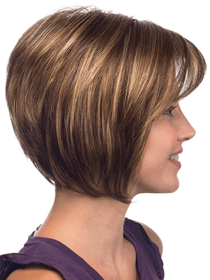 Deena is a fun and flirtatious style. Her angled bob and side swept bangs give you just the right amount of edge for a playful night out or a productive day at the office full of sophisticated beauty.