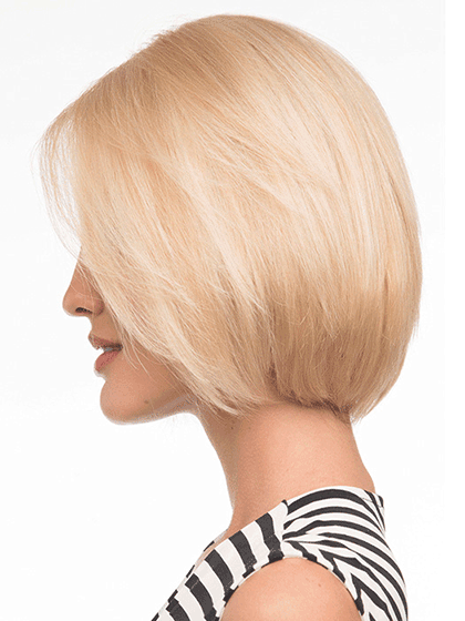 As with all our 100% Human Hair styles Amelia features a completely hand-tied mono top lace front construction with hand-tied sides and back. Slight layering along the face and nape offer a perfectly sculpted jaw-length bob-a classic do that looks great on every woman!