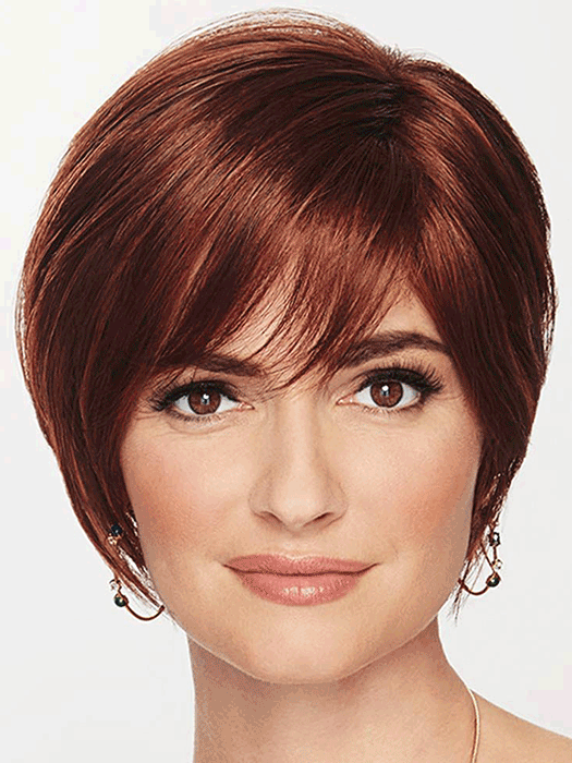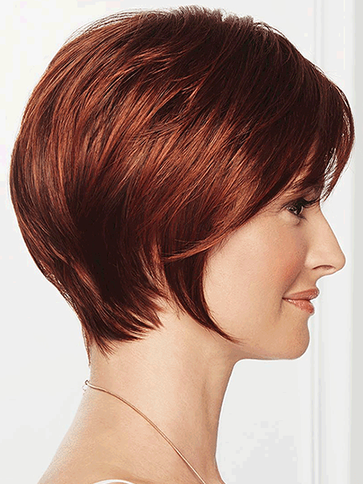 The perfect balance of modern and classic with a side-swept bang face-framing layers sculpted nape and lace front monofilament part.
