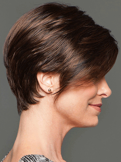 A little bit sassy. A little bit free spirit. A lot of fun. This asymmetrical cut has a long side-swept fringe and textured movement through the top.