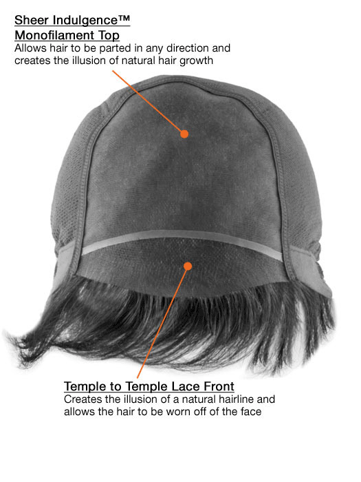 This beautifully tapered below the shoulder page combines the natural looking hairline of a Sheer Indulgence lace front cap for off the face styling with the cool light comfort of the Sheer Indulgence monofilament top and 100% hand knotted base plus the added styling versatility of fine human hair.