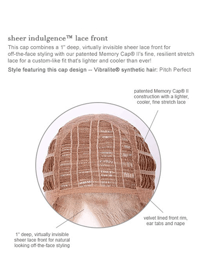 Offering a lace front for optional off the face styling and a Memory Cap base for a custom like comfort fit this provocative cut includes sleek layers in the front and sides that beautifully blend to a subtly layered collar length back.
